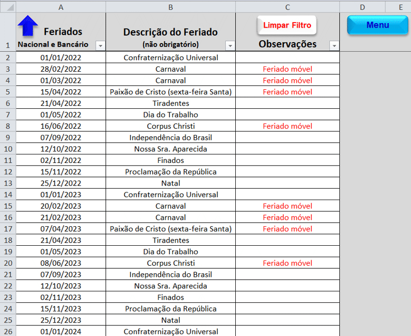 - Requer Microsoft Office Excel 2010 ou superior instalado na sua máquina e necessário habilitar as Macros caso seja solicitado (essa solicitação depende da configuração do seu Excel).