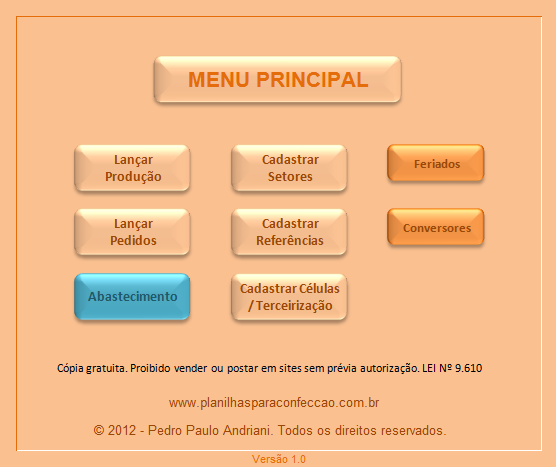 PLANILHA 09 - CONTROLE DE ABASTECIMENTO POR SETORES - Versão 1.0: