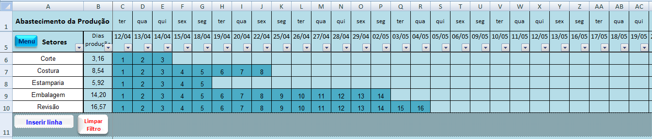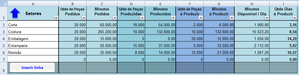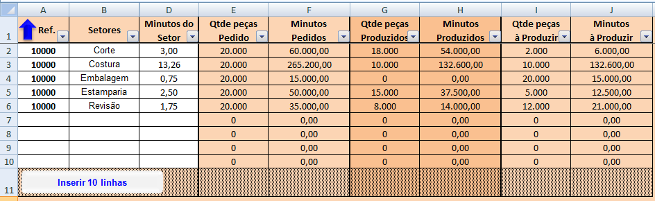 Um problema muito comum nas Confecções é o atraso na entrega dos pedidos. Muitas Confecções não tem o conhecimento da sua capacidade produtiva e vendem com prazos que não conseguem cumprir. Existem vários fatores que acabam impedindo o cumprimento das entregas em dia, como: falta de matéria prima, aviamentos e também problemas de produção, mas o mais comum é simplesmente por não saber a sua capacidade produtiva. Esta Planilha poderá ajudar você, é possível fazer simulações com seus produtos que serão vendidos na Coleção, definindo as quantidades por produto e automaticamente mostrará quantos dias levará para produzir com a sua capacidade produtiva atual. Com esta informação você poderá tomar decisões quanto ao prazo de entrega, aumentando o prazo ou mantendo o prazo e aumentando a capacidade produtiva, etc. Você também poderá ir acompanhando o abastecimento da Confecção, lançando a movimentação diária dos seus produtos por setores.