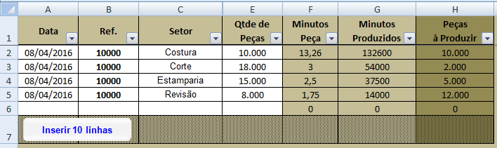 LANÇAMENTO DA PRODUÇÃO: Aqui você faz os lançamentos diários por referência e setor para atualização automática da Planilha.