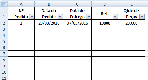 LANÇAMENTO DOS PEDIDOS: Aqui você lança os pedidos por referência e quantidade para atualização automática da Planilha.