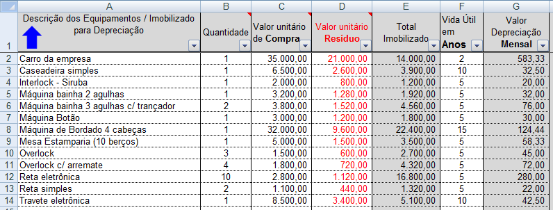 Seguem abaixo imagens da planilha para conhecê-la um pouco. Os valores e quantidades são para exemplo, portanto podem não ser reais.