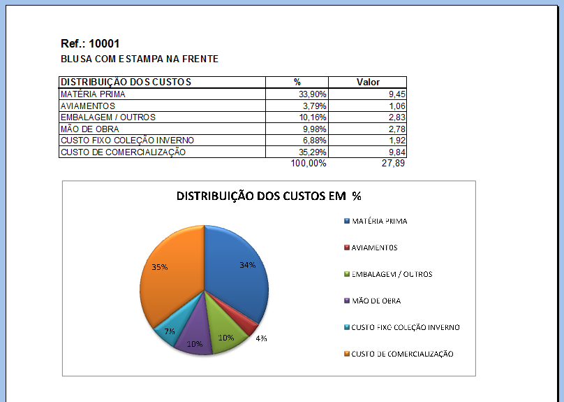 - Visualização em Gráfico da distribuição dos custos do seu produto.